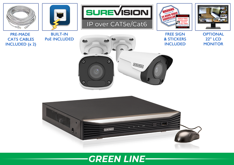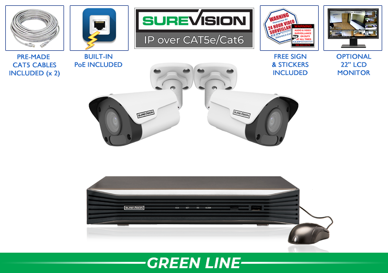 This complete system package comes with our industry leading SureVision NVR. This professional grade NVR unit was designed to be simple and easy to setup while offering unmatched quality, function and reliability. The NVR comes equipped with all of the latest features such as 24/7 recording, motion recording, object masking, mobile alerts, audio and much more. You can easily view and receive instant motion alerts from your cameras remotely on any smartphone, tablet or computer using our free software and mobile apps. Built-in PoE (power over ethernet) makes this unit ideal for simple plug and play setup. All SureVision NVR units have extended PoE allowing you to cable over 800ft away! You can expect the very best surveillance for your business or home with this top of the line NVR.